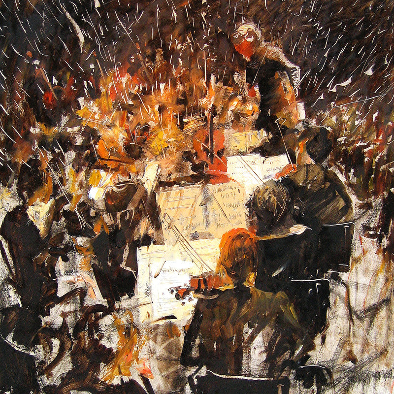 An art print of a Duncan Stewart original titled “Chaos in Harmony”, showing an orchestra playing — a powerful depiction of musical energy, unity, and the beauty of collective creativity.