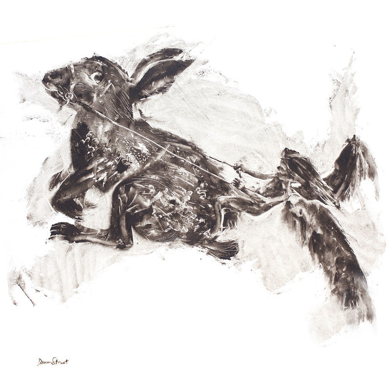 An art print of a Duncan Stewart original titled “Wild Creativity”, showing an angel riding a bunny — a whimsical and imaginative scene that blends innocence, fantasy, and playful spirit.